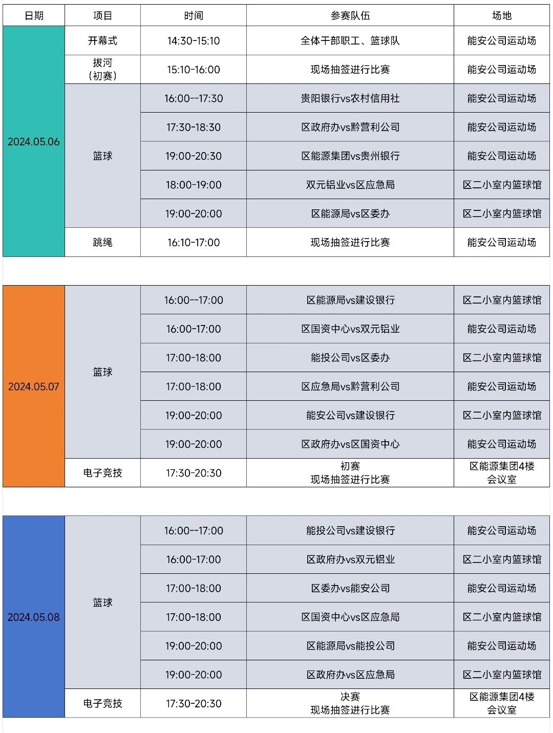 本屆職工運動會舉辦時間為5月6日-11日,比賽設有籃球、拔河、羽毛球、兵兵球、跳繩和電子競技等多個項目,不僅有展現(xiàn)水平的個人項目,還有考驗協(xié)作的團體競賽。我們期待每一位職工都能積極參與其中,在運動中尋找樂趣,在競爭中超越自我。