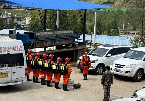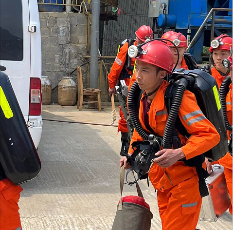 14時(shí)32分救護(hù)隊(duì)接到召請(qǐng)電話,立即組織出動(dòng),于14時(shí)48分到達(dá)礦井,初步了解事故情況后,向指揮部領(lǐng)取救援任務(wù),按照指揮部的指令,迅速開展搶險(xiǎn)救災(zāi)工作。